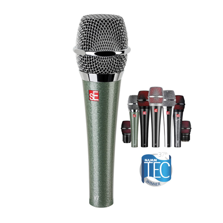 V7 话筒具有超低的处理噪音、可获得清晰音质的专用铝质音圈、定制的话筒悬挂架、坚固耐用的全金属结构以及反馈前的大量增益,是我们最出色的舞台人声话筒。